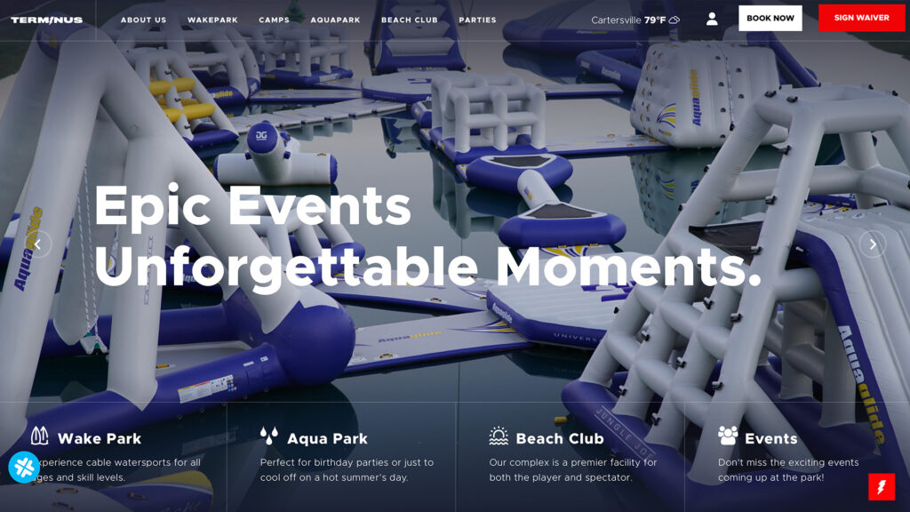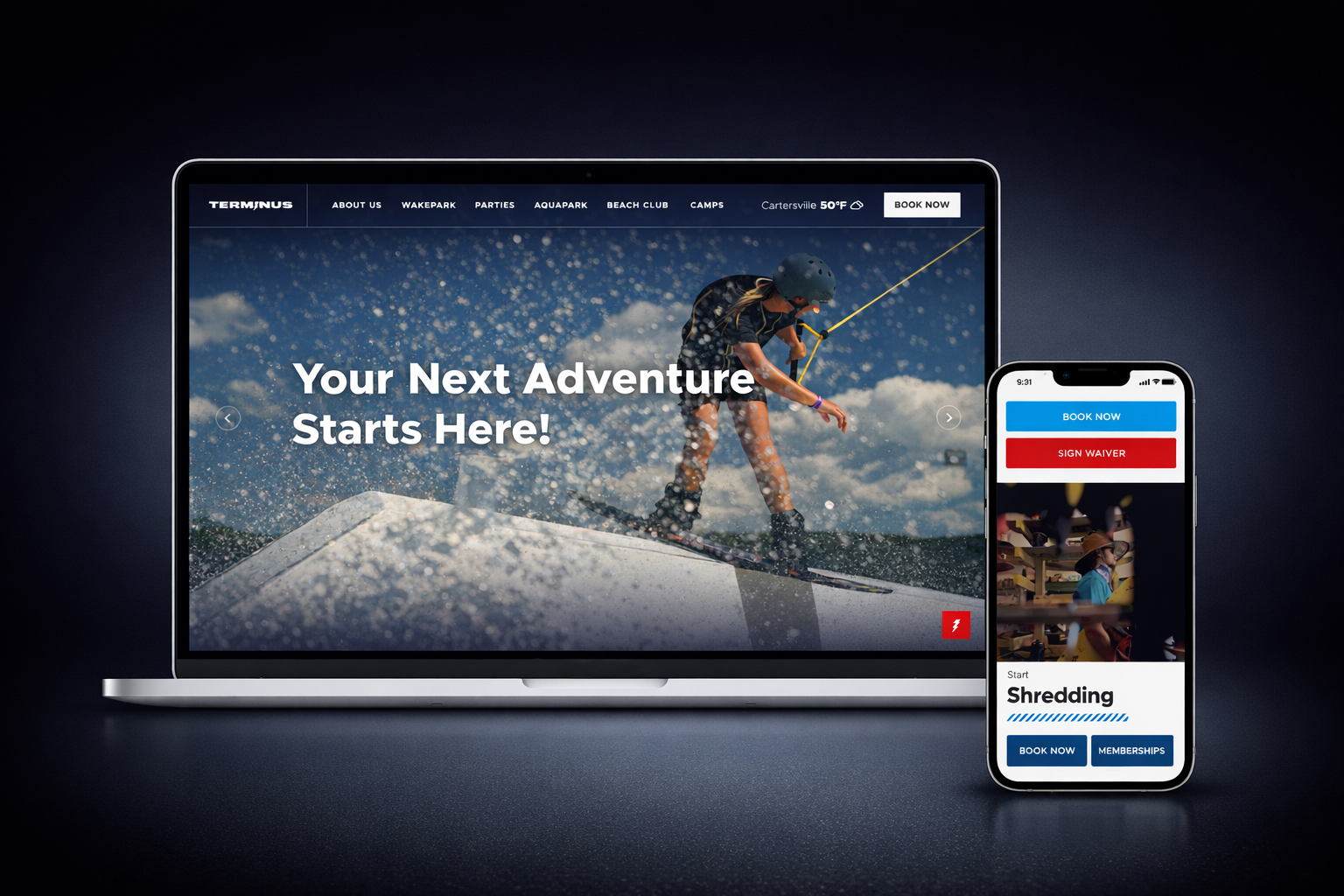 , our work for Terminus Wake Park captures the thrill of water sports through bold, immersive design.